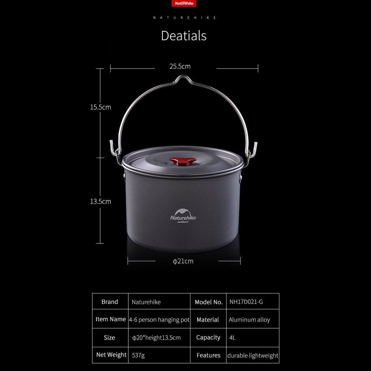 Cacerola/olla - aluminio para 4/6 personas - 4 lts. | naturehike - Tienda Desafio