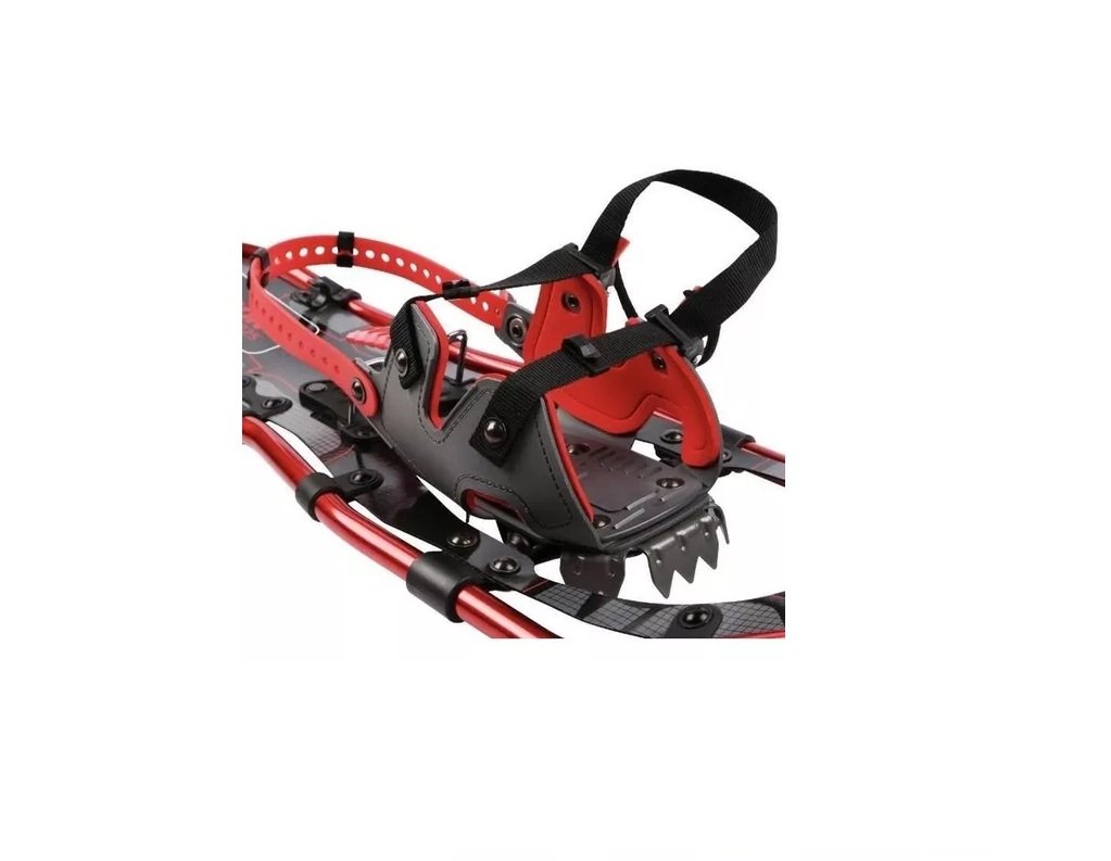 Raquetas técnicas de montaña con excelente tracción y diseño estrecho que facilita caminar sin pisarse. Incorporan puntas metálicas tipo crampones que permiten avanzar sobre nieve blanda y evitan resbalones en nieve dura. Modelo polivalente, adaptable a todo tipo de terrenos.