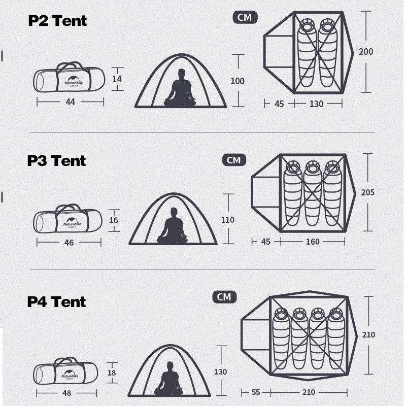 Acampá cómodamente con las tres capacidades para dos, tres y cuatro personas de las carpas P Series de Naturehike. Sus varillas de aluminio la hacen liviana y resistente, mientras que su tela de poliéster antidesgarro es impermeable y cuenta con protección contra los rayos UV. Definitivamente una opción ideal para llevar en la mochila.